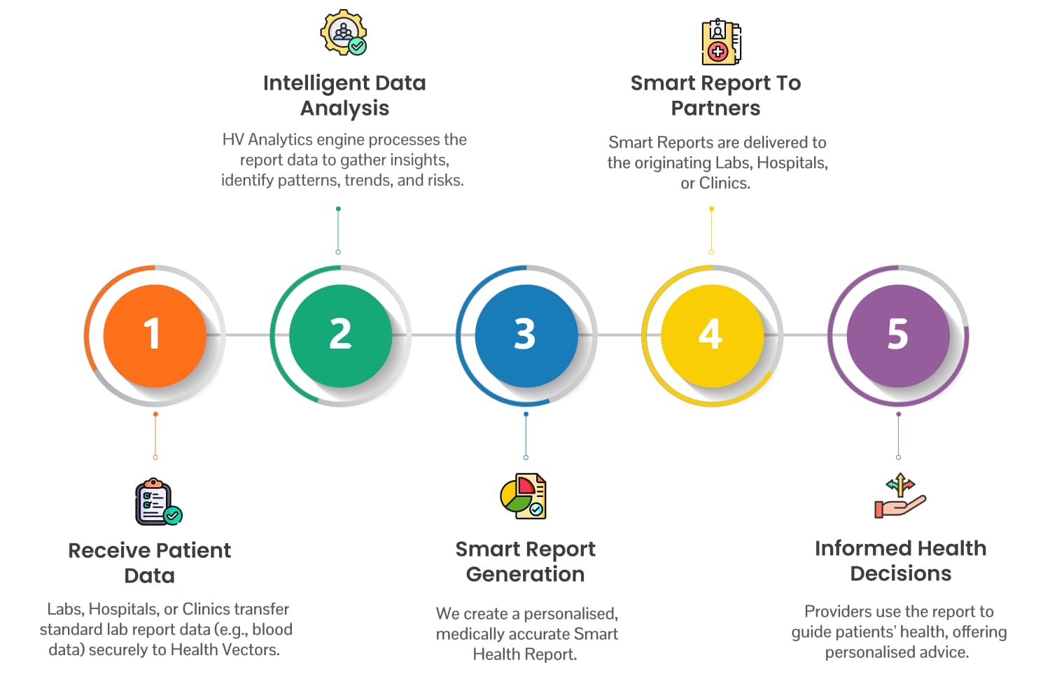 Blood test results are more than mere numbers—they reveal interconnected insights about an individual's health story. Our AI-driven expert system simplifies complex personal data into actionable insights through our Smart Health Check Report, empowering individuals to make informed health decisions.